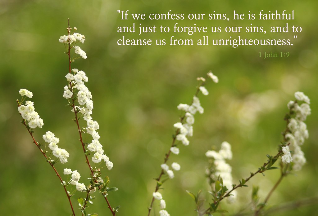 - 1 John 1:9 - "If we confess our sins, he is faithful and just and will forgive us our sins and purify us from all unrighteousness."